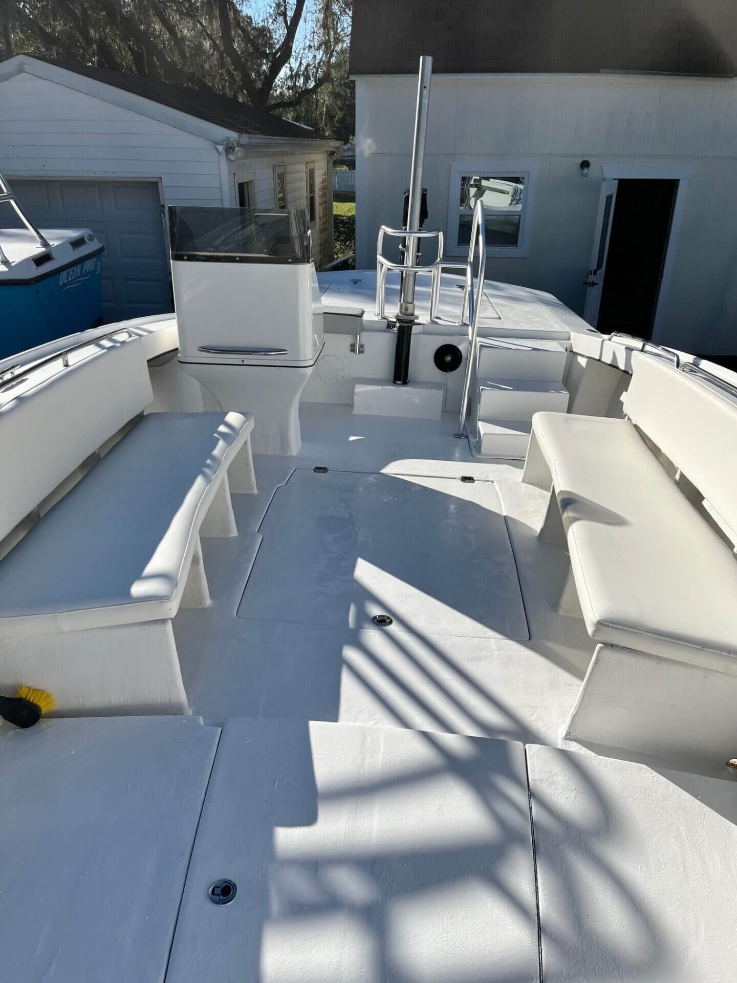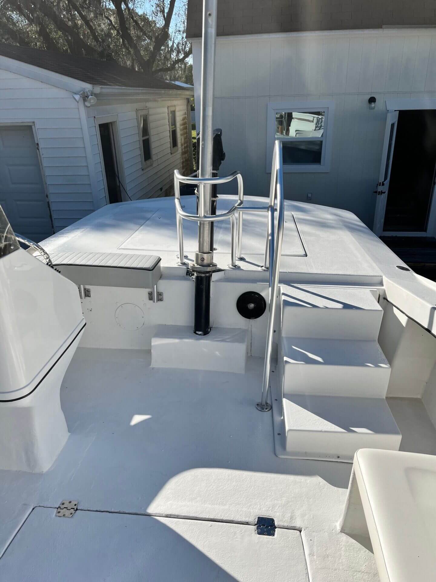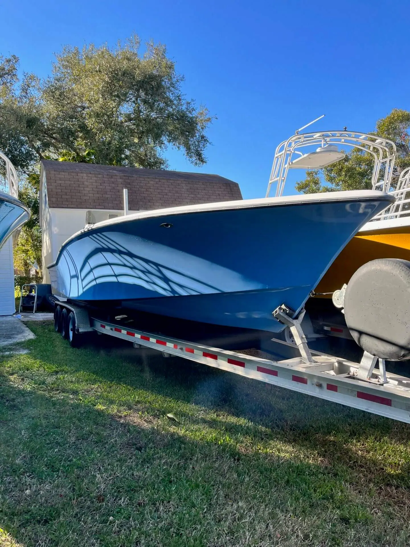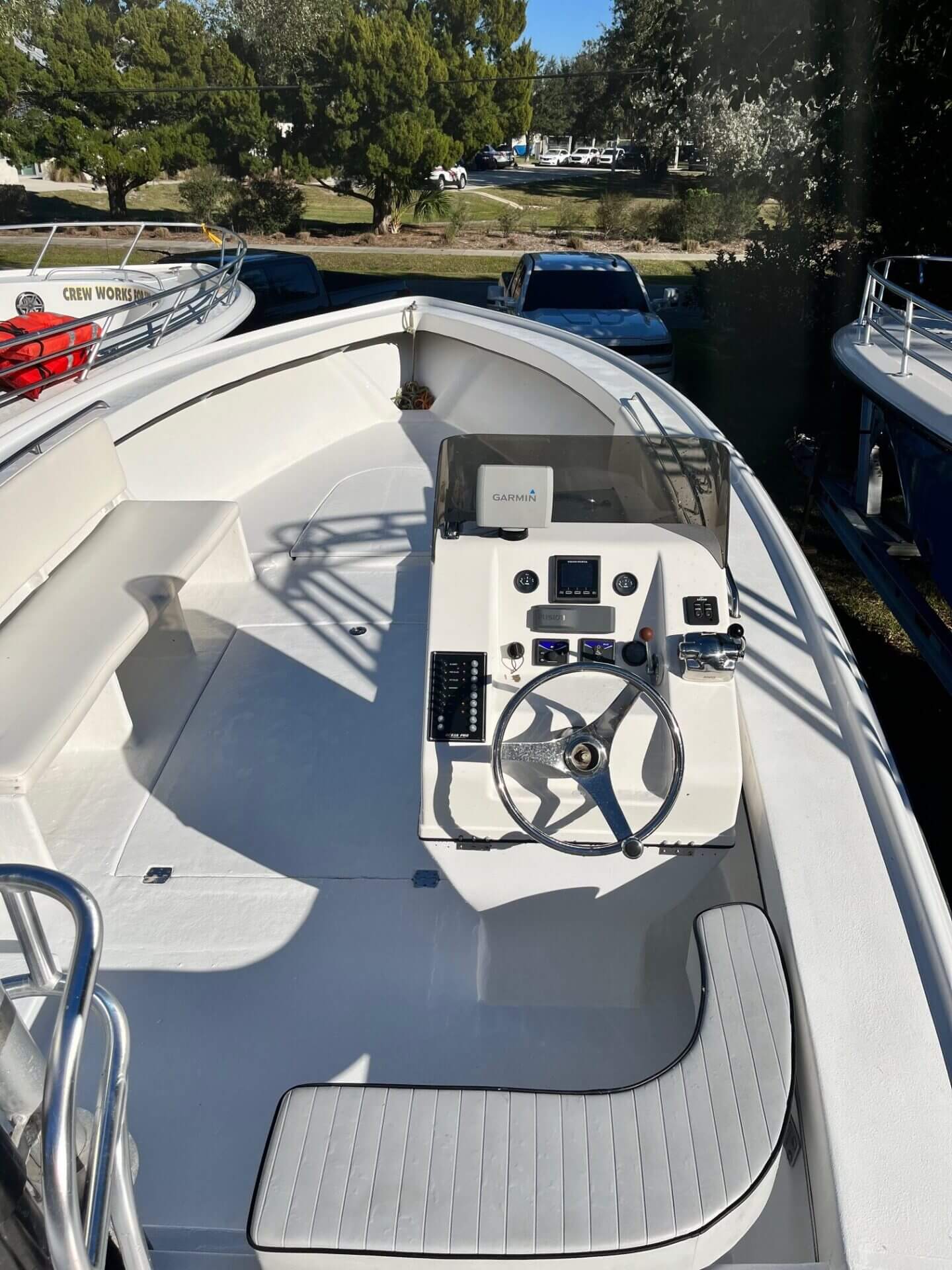 Boat was completely gutted and reconditioned. Trim tabs added. All new wiring. Complete top side fiberglass redo. Stainless CWS switch. Brand new helm and volvo helm controls. New helm and windshield. New fuel gauges and switch panel. Garmin gps /transducer. Fusion bluetooth stereo. Rebuilt swivel collar and roller head. New seat and helm.